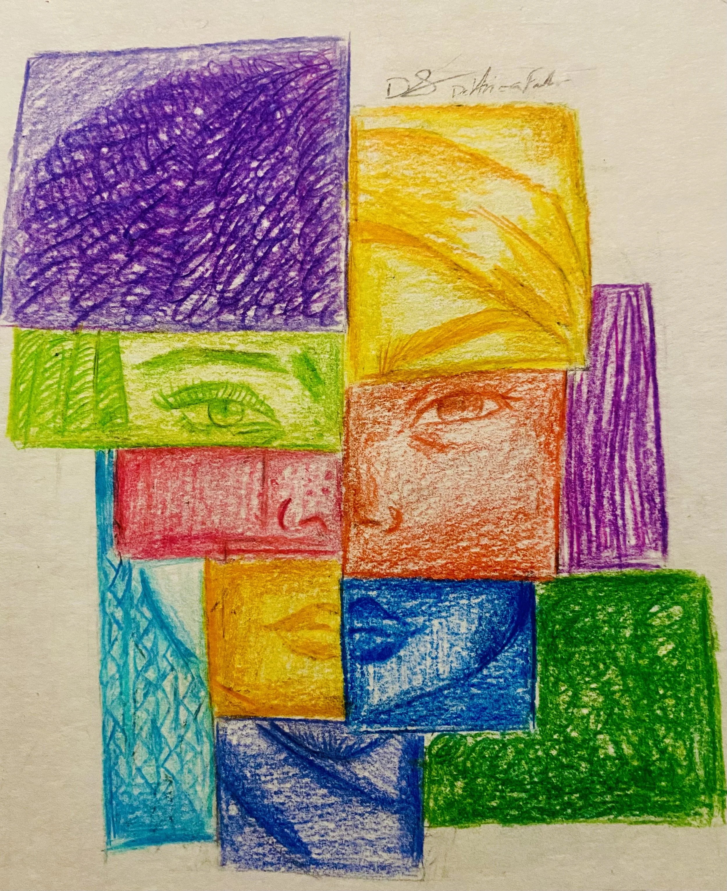 My entry is a drawing of what justice looks like to me. At first glance, you can see every box fulfills a different character. Each individual in my drawing has a different color to represent their different paths and lifestyles. Though they each have their own color and path, they are together as one. Although they might not relate to each other, they blend and make every color brighter than it is standing alone. This is what justice looks like to me. It looks like not trying to become one another but accepting every individual is unique.